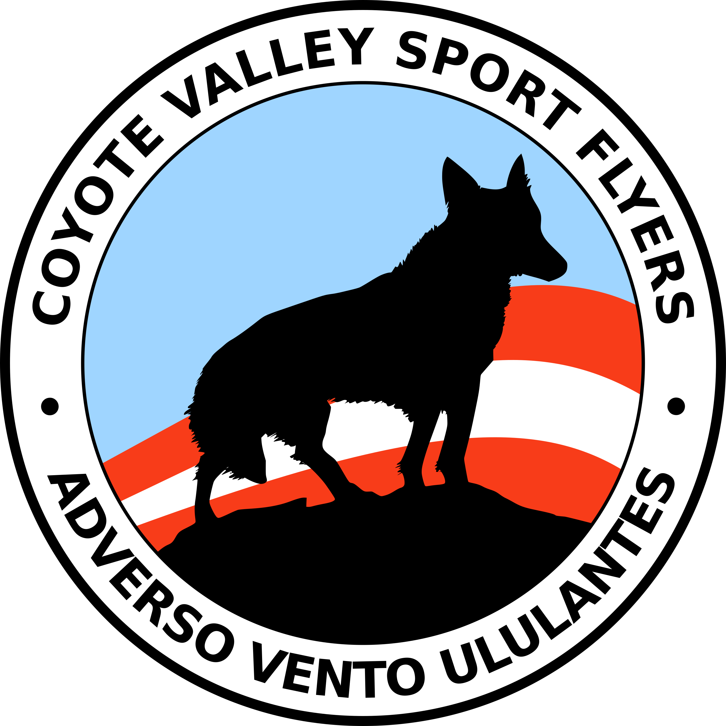 The Coyote Valley is the name of the lowlands South of San Jose, and the airplane model is “RANS Coyote II”, so it all fit. Our motto, adverso vento ululantes, means “howling into the wind”. Pilots take off into the wind, but we are Coyotes, and so…. Here all week, people.