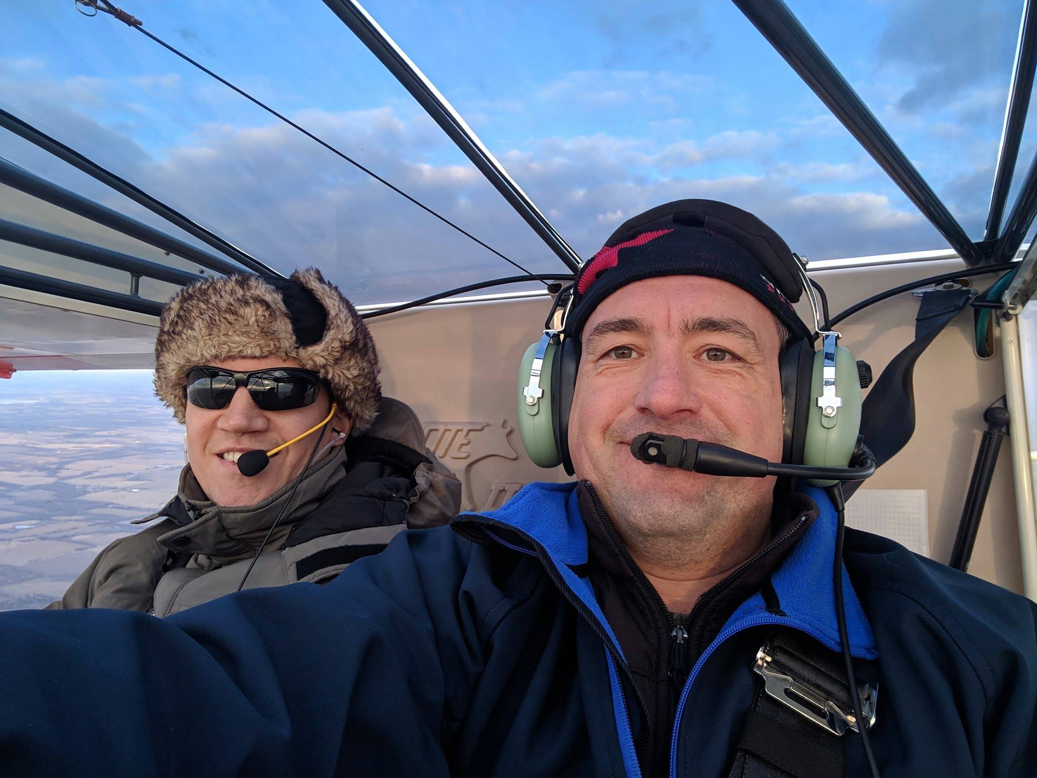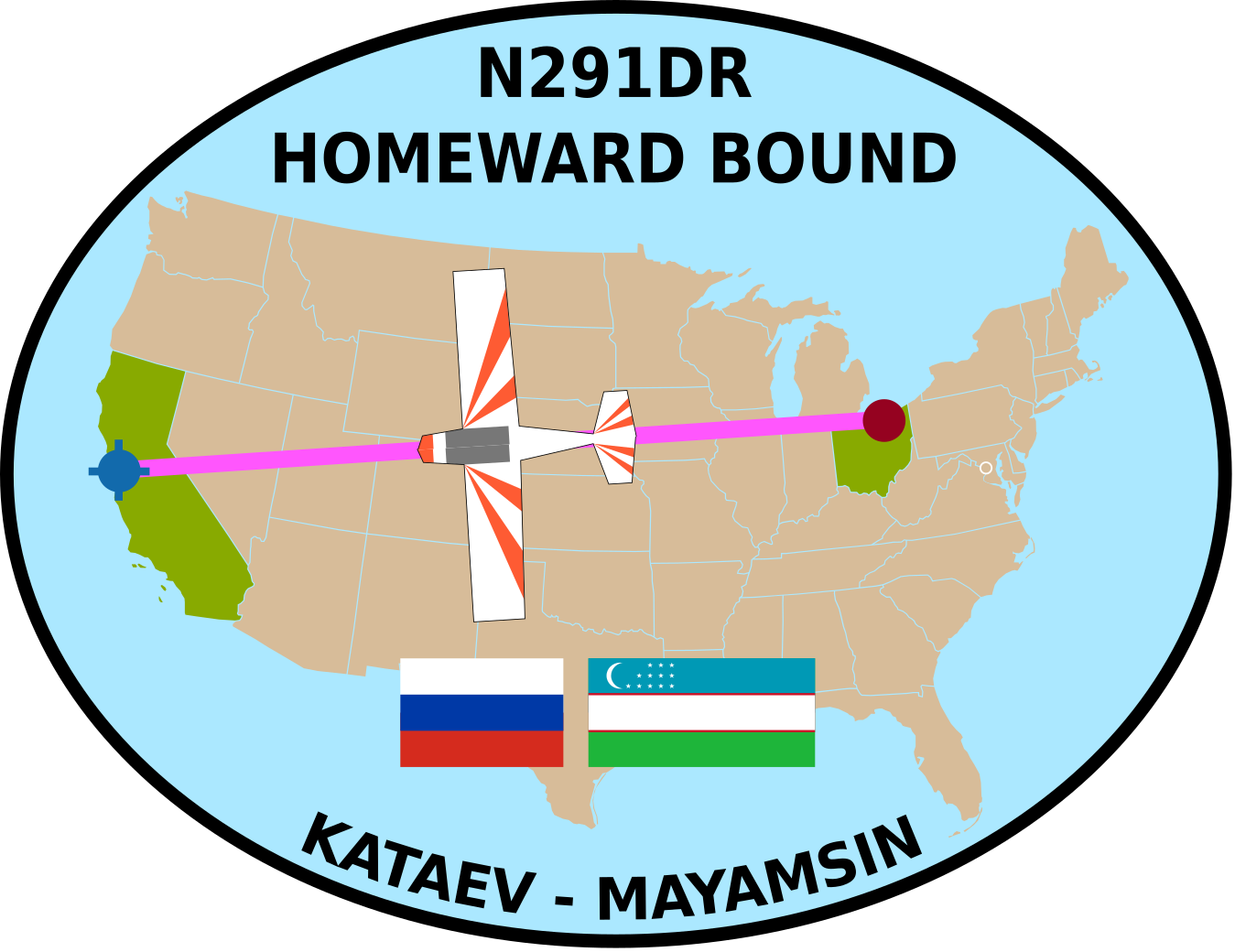 By that time, it was December 2018 and very cold and snowy in Ohio, which is where our airplane was. Someone needed to ferry it back to California. Luckily, two of our club members, Sergey and Valentin, are no strangers to bitterly cold weather, and they volunteered to do the job. Any operation of that magnitude certainly requires a mission patch:
